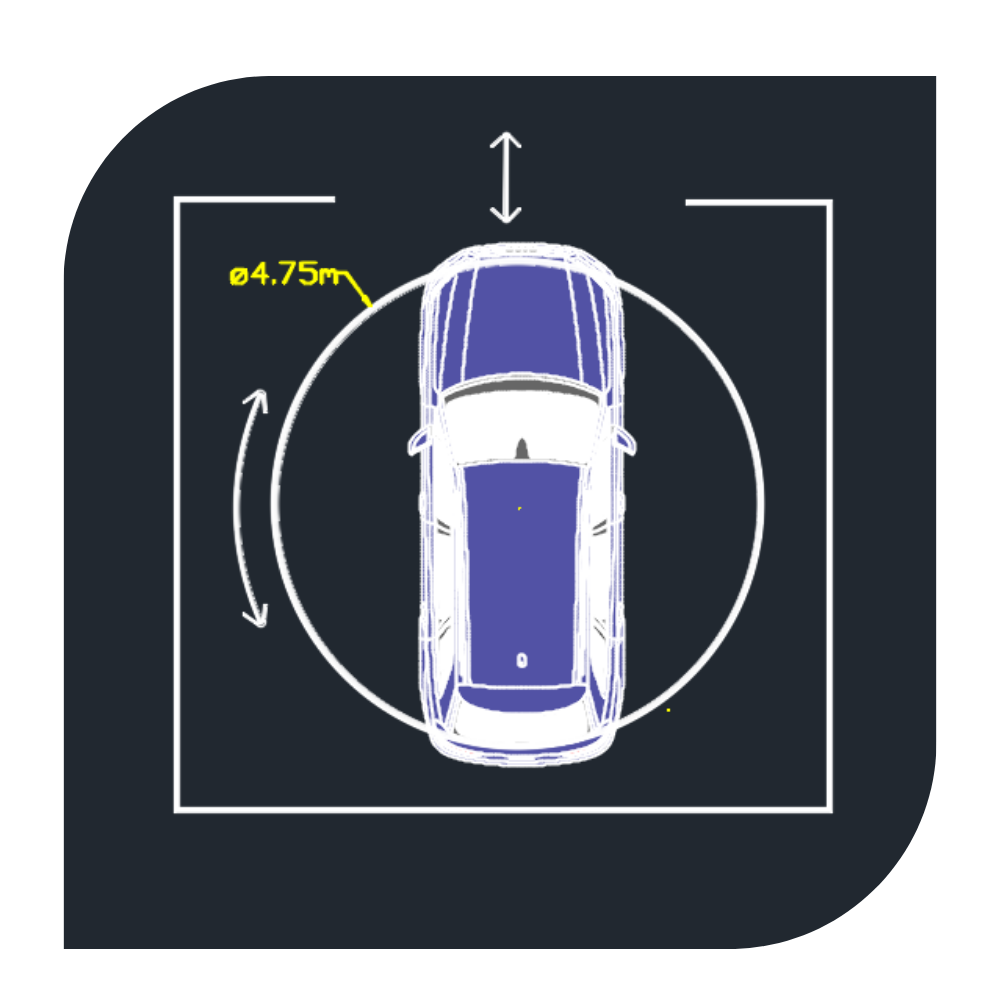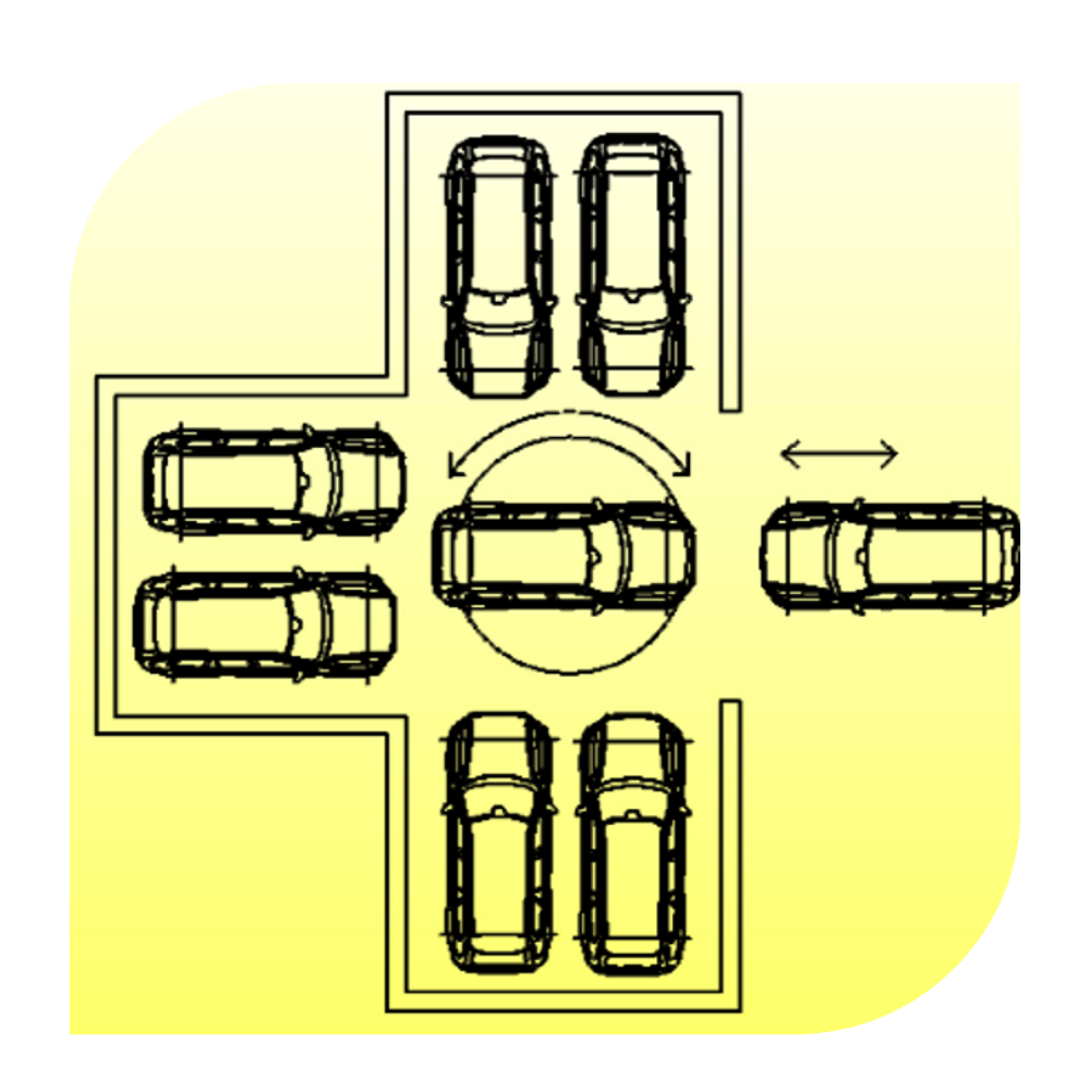 Bilkarusell / dreieskive ( car turntable ) for en bil brukes enten som vanlig kombinert parkeringsplass/snuplass (ingen rygging/snuing) eller som en sentrert snuplass som kan føre bilene inn i posisjon til parkeringsplassene som ligger rundt. Tre typer; utendørs (for grop), innendørs (for grop) og innendørs med rampe implementert (legges rett oppå eksisterende gulv). Maks. 3.5 tonn, motor min. 2.2kW.