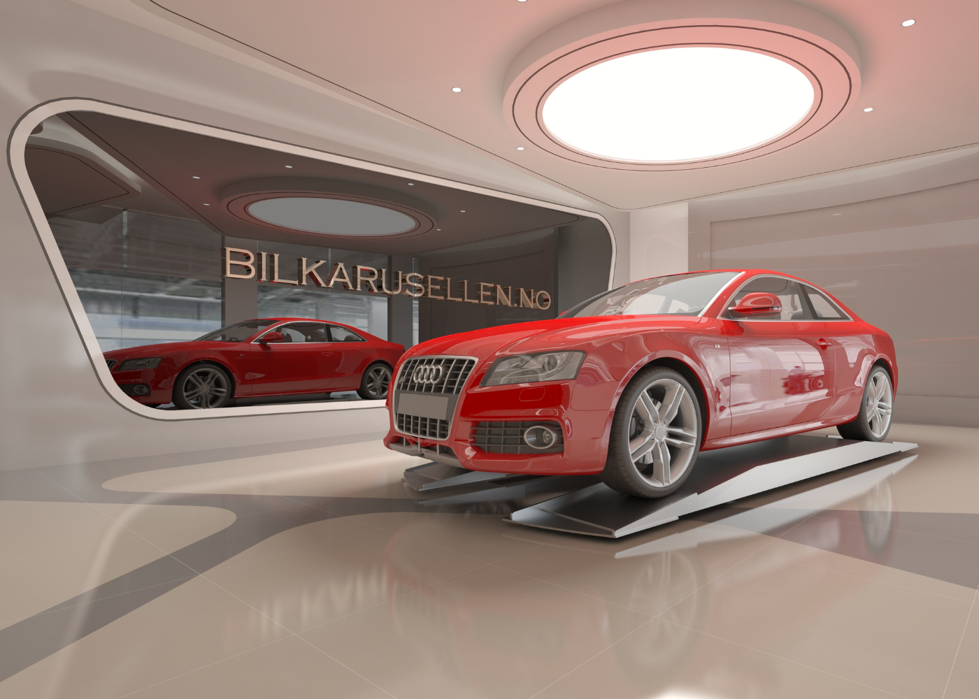 Kompakt Bilkarusell for en bil (type K) - utstilling/messe, fotografering av bruktbiler, parkering